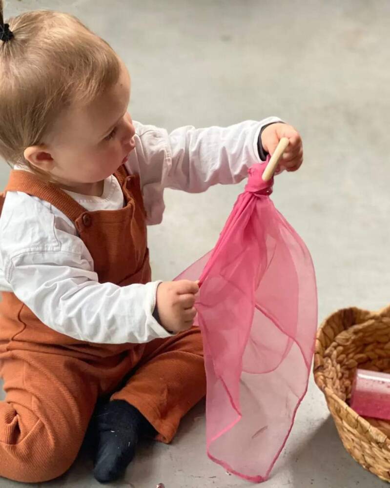 De Organza Sjaaltjes zijn heerlijk zacht en doorschijnend. Je kunt hier met je baby heerlijk Sensopatisch mee spelen en zo samen de kleuren ontdekken.