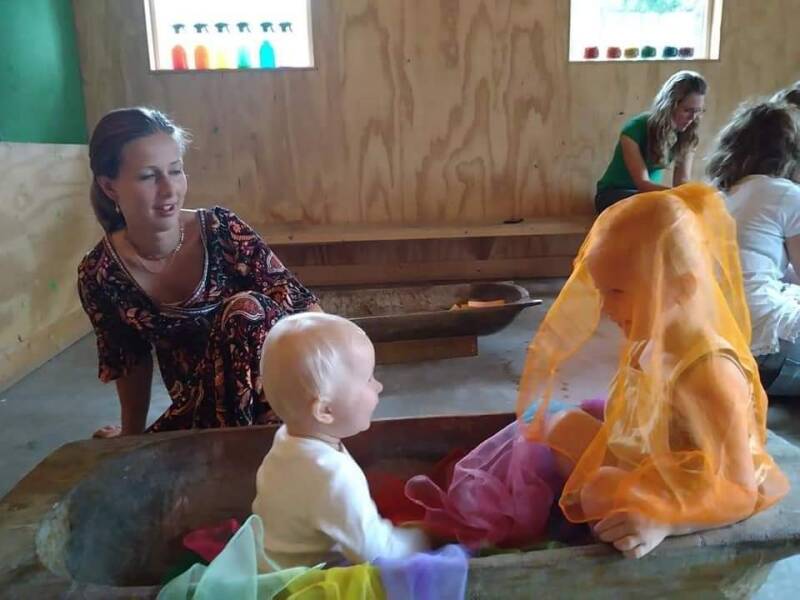Omdat je echte materialen aanbiedt aan jonge kinderen blijf je er altijd bij en hou je toezicht. Je kunt mee spelen, maar gewoon er bij zitten en ze laten ontdekken is ook goed.