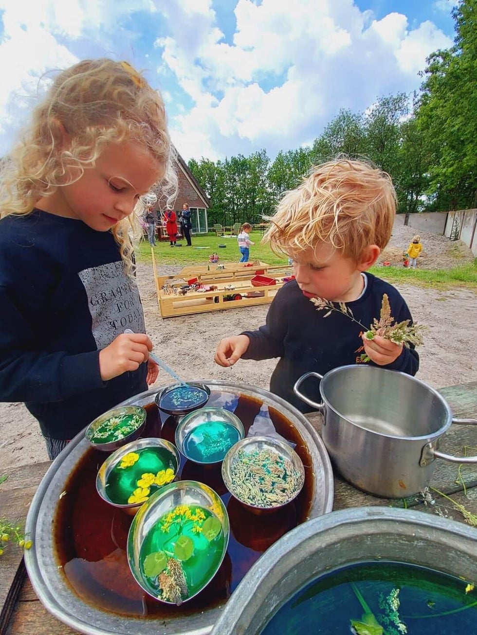 Er zijn dan ook al heel wat toverdrankjes, moddertaartjes en bloemensoepjes gemaakt in het buitenkeukentje. Het buitenkeukentje is trouwens echt niet alleen in de Zomer leuk. Er kan het hele jaar door in het buitenkeukentje gespeeld worden. Wissel af en voeg eens een nieuwe spel impuls toe. Bekijk maar eens wat wij allemaal al voor sensorische activiteiten in het buitenkeukentje hebben gedaan.