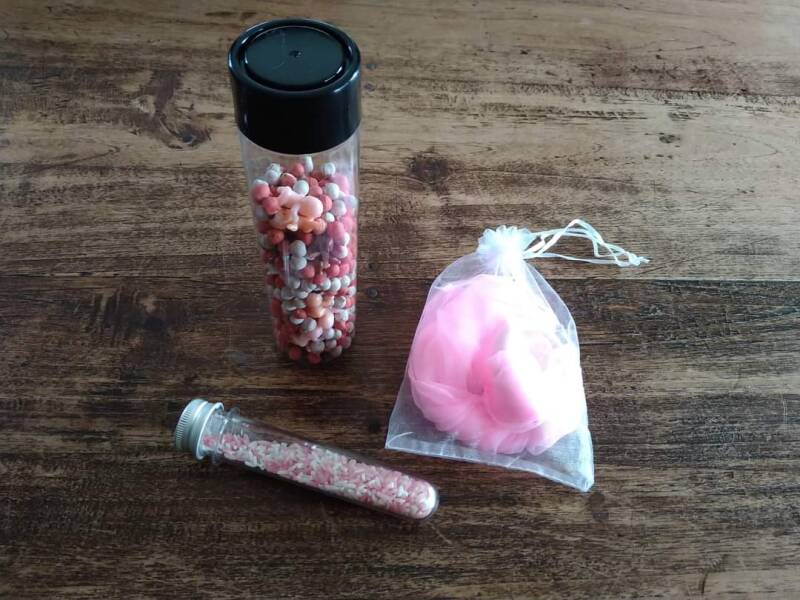 Na het schudden maak je de fles weer open en doe je het materiaal er bij in. Indien nodig vul je de fles nog aan met een beetje water. Dan doe je de dop er weer op en schud je de fles dan nog een meer goed. Soms lijkt de fles eerst nog een beetje troebel, maar dit trekt helemaal bij.