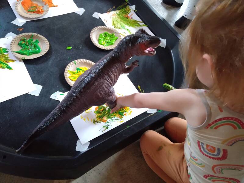 Dino afdrukken met verf