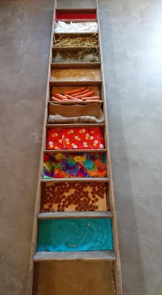 In de Kliederschuur hebben we een blotevoetenpad gemaakt van een oude ladder. Super leuk om deze bij ieder thema te gebruiken! Wat hebben we in het Sinterklaas blotevoetenpad gedaan?