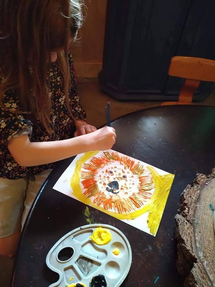 (Bijv. stempelen met oranje sponsjes of een leeuw maken na het experimenteren met de slacentrifuge)