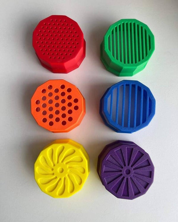 Super toffe zeefjes van Latenwespelen en X-Creator. Ze zijn stapelbaar, in de regenboog kleuren. Ideaal om allemaal verschillende materialen mee van elkaar te scheiden. Maar ook om mooie afdrukken mee te maken in bijvoorbeeld kinetisch zand. Ze kunnen ook in natte materialen als slijm en gelli en mee in bad.
