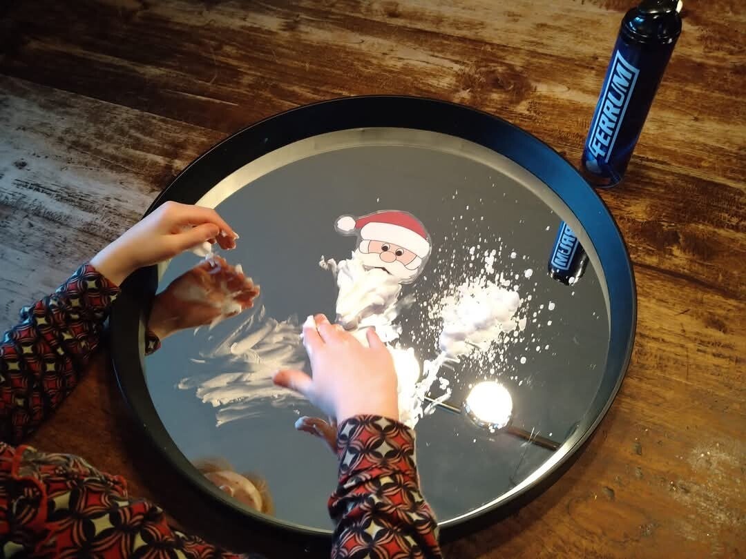Na de baard van Sinterklaas dan ook maar de baard van de Kerstman. Het kan gewoon lekker op tafel, in een bak, schaal, dienblad of tray. Ik werk ook graag met spiegels. Dat geeft een extra effect.